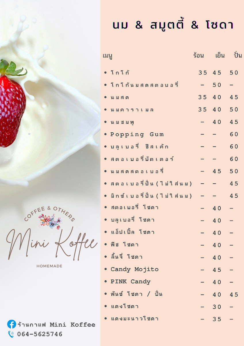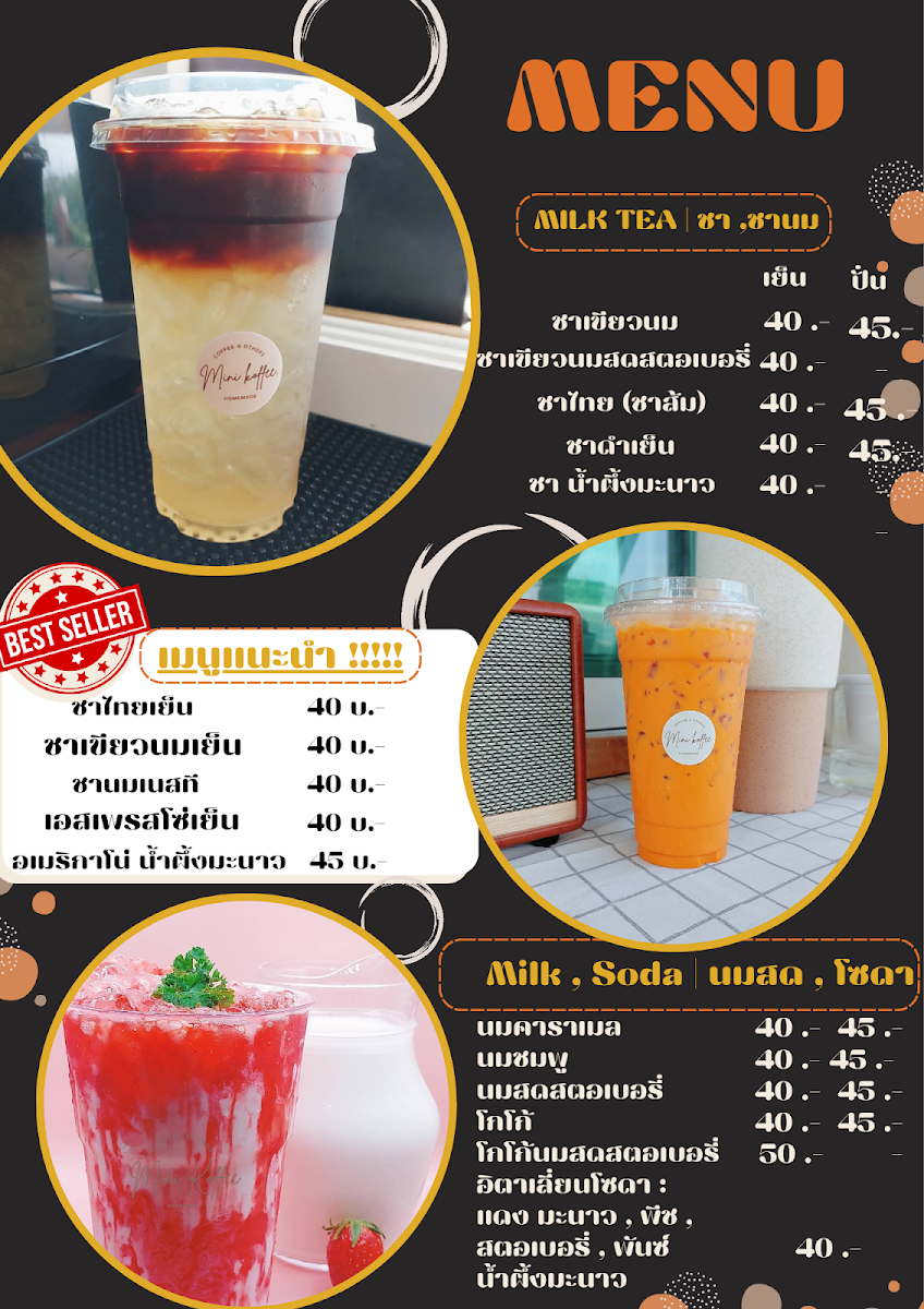 At Mini Koffee, the star of the menu is undoubtedly the freshly brewed coffee. Their signature drink, อเมริกาโน่ น้ำผึ้งผสมมะนาว, is a must-try at just THB 40.00. Picture this: a rich and bold Americano, perfectly balanced with the sweetness of honey and a hint of zesty lemon. The aroma envelops you, teasing your senses before you even take that first sip. Each mouthful is a blend of deep flavors, delivering an invigorating yet comforting experience.